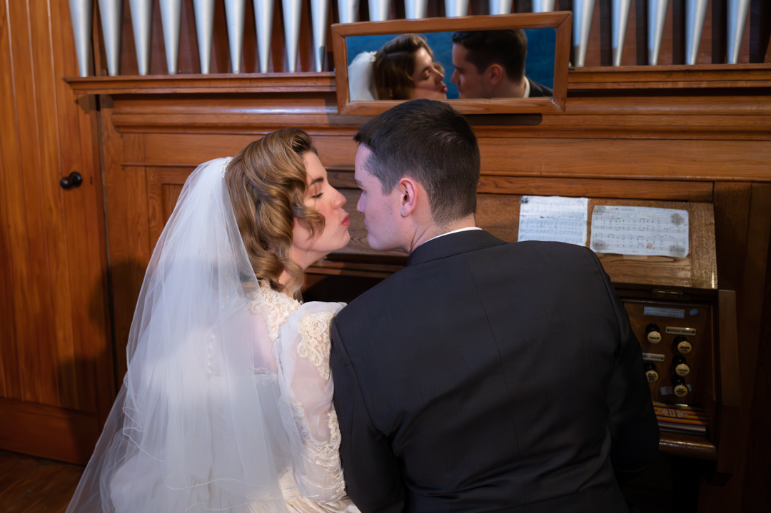 I selected an image and cleaned up the background areas. I then selected around Jess and asked for it to create a lace wedding dress. It did this on the first attempt. Changing Ollie’s clothes proved to be a little bit more difficult. The initial attempt did not produce a very good look.