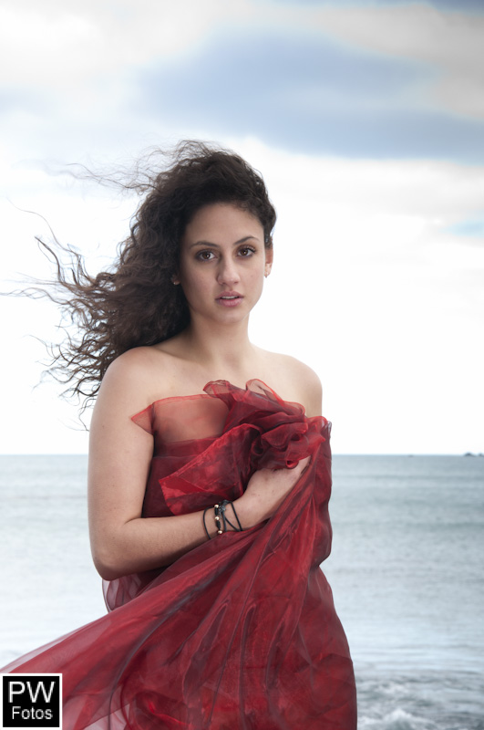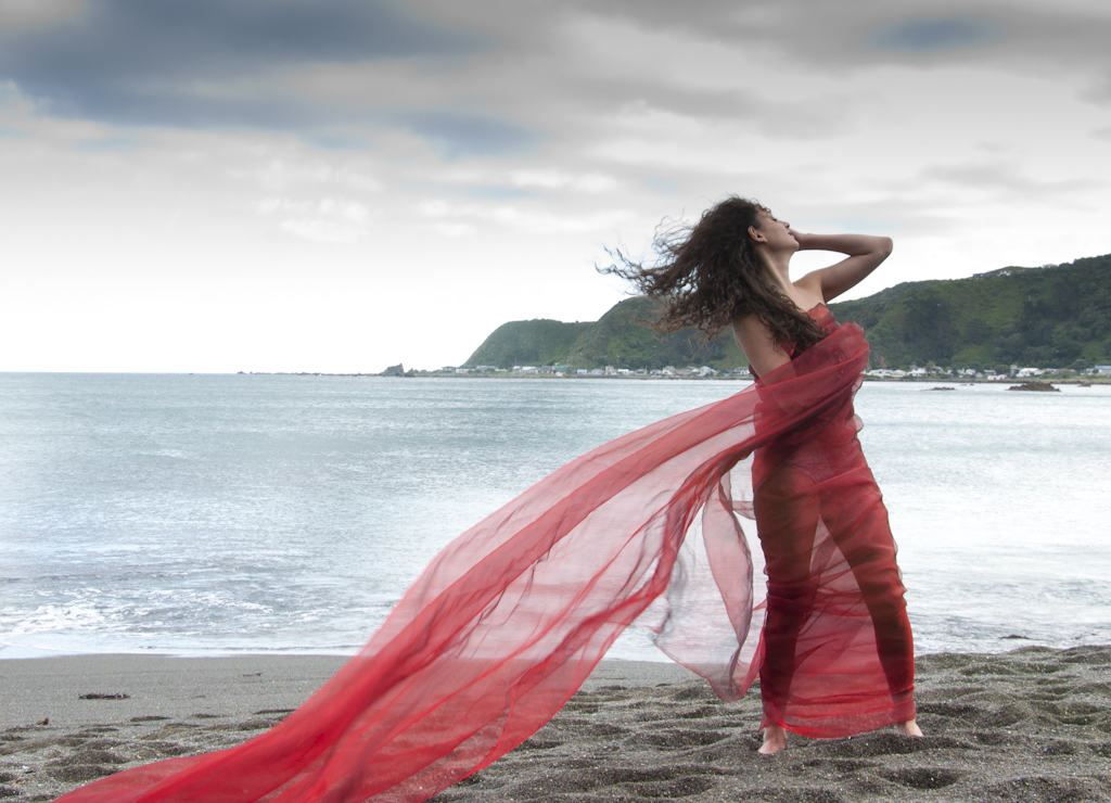 The final sequences were on Breaker Bay where she bravely agreed to try some fabrics and fly them in the wind. While the day had started out with promising weather as we went through the shoot the light got worse, the wind stronger and the temperature dropped so we called the shoot off early.