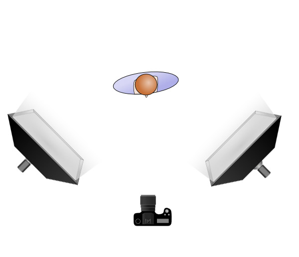 To do this you create a lighting zone and shoot everyone on the same setting. This was achieved with two strobes set to the same power and positioned on both sides of the camera as shown below.
