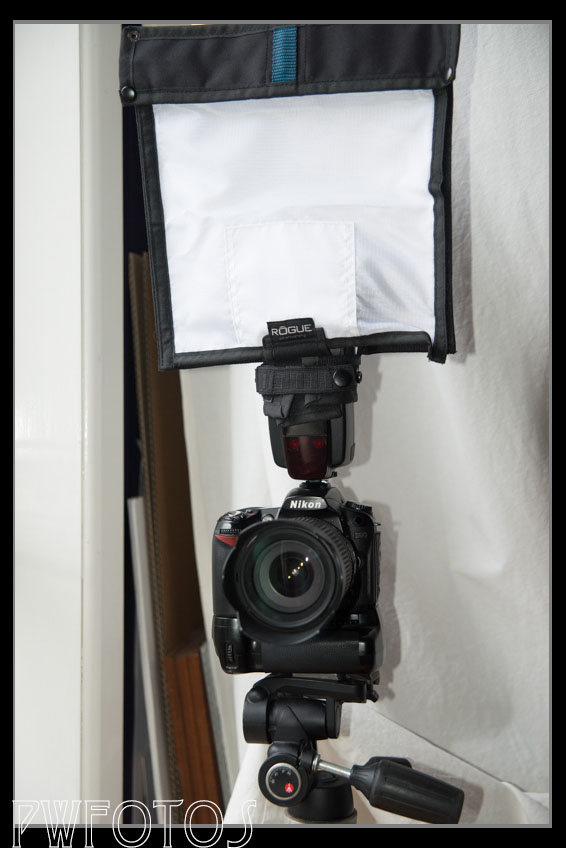 Now on-camera flash is generally one to avoid if possible as it is a very harsh light and not the most flattering. You need to soften the light in some way. Generally to soften the light you need to increase the size of it relative to the subject. To do this I used a Rogue flash bender and diffusion panel. This fits over the speed light and spreads the light out resulting in a softer light.