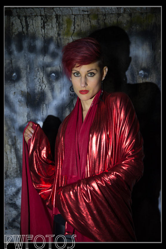 LRArelle-3694 July 10, 2016 566 × 848 Arelle at the bunker I noticed some interesting images on the wall so I positioned Arelle in front of. This image was lit with the lime cube.