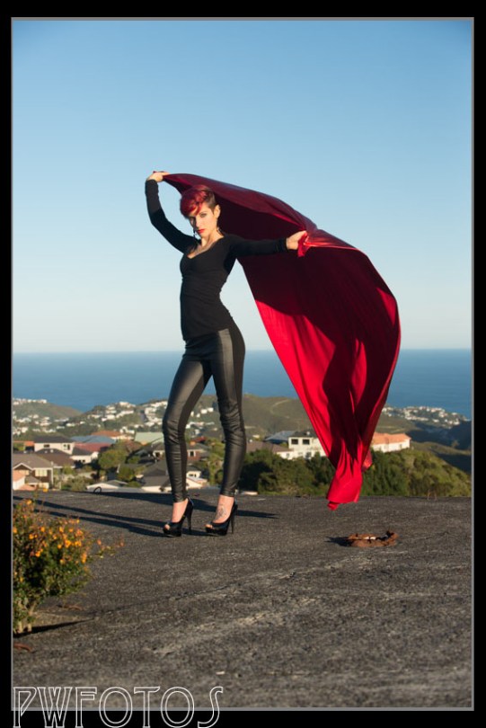 LRArelle-3788 July 10, 2016 566 × 848 Arelle at the bunker We climbed onto the roof of the complex and used the red fabric which the wind picked up
