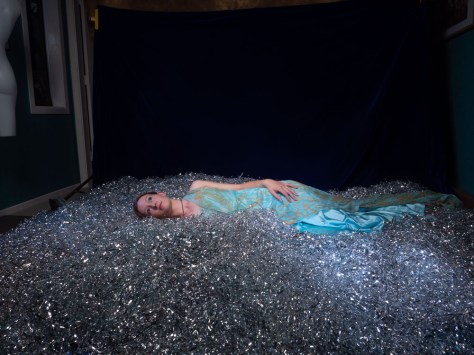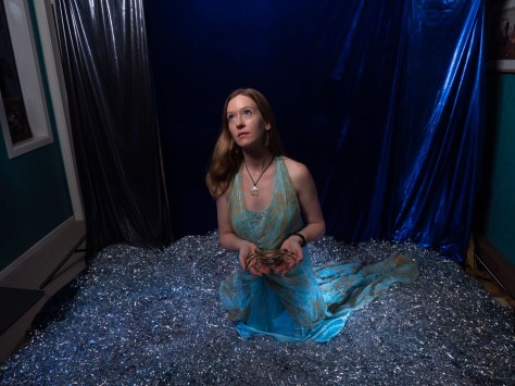 We then moved into the main shoot where I had envisaged Sian being covered by the crabs. The first step was to get her in position and then adjust the main light as she was now much lower than before. I also had to change my shooting angle to be much lower as well. As the final shot was to be composited together the camera was locked onto my tripod.