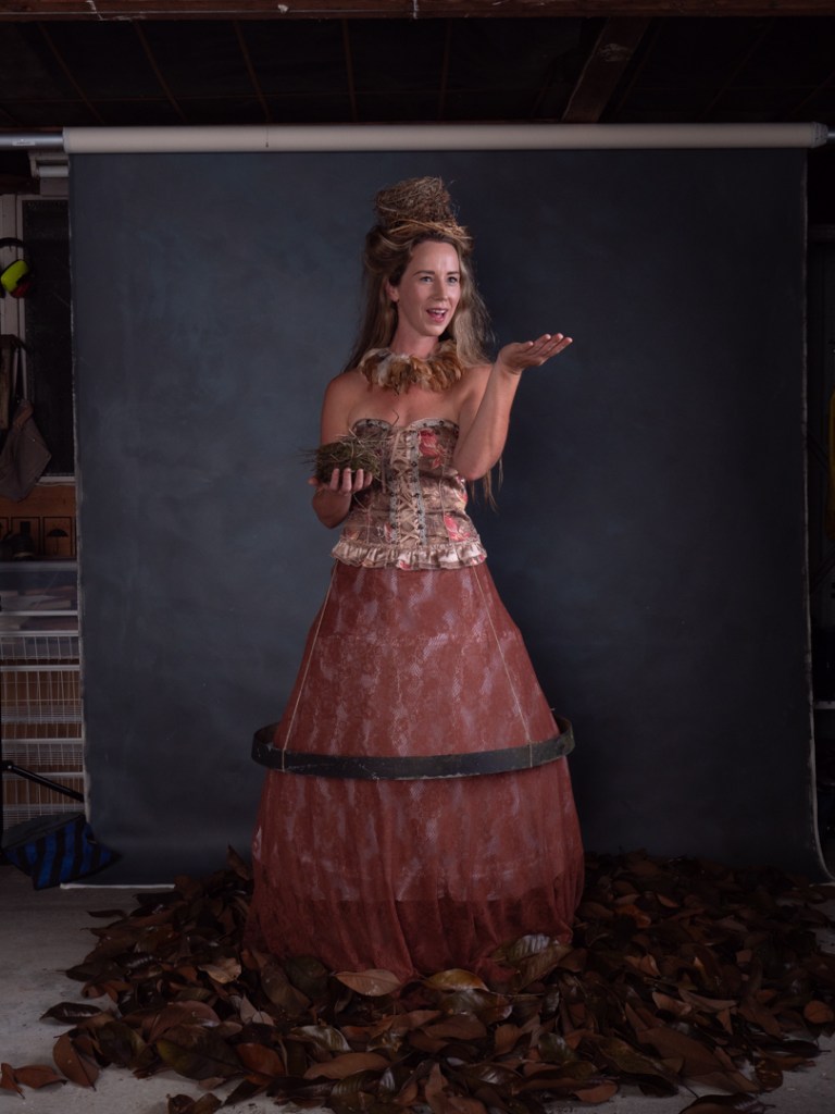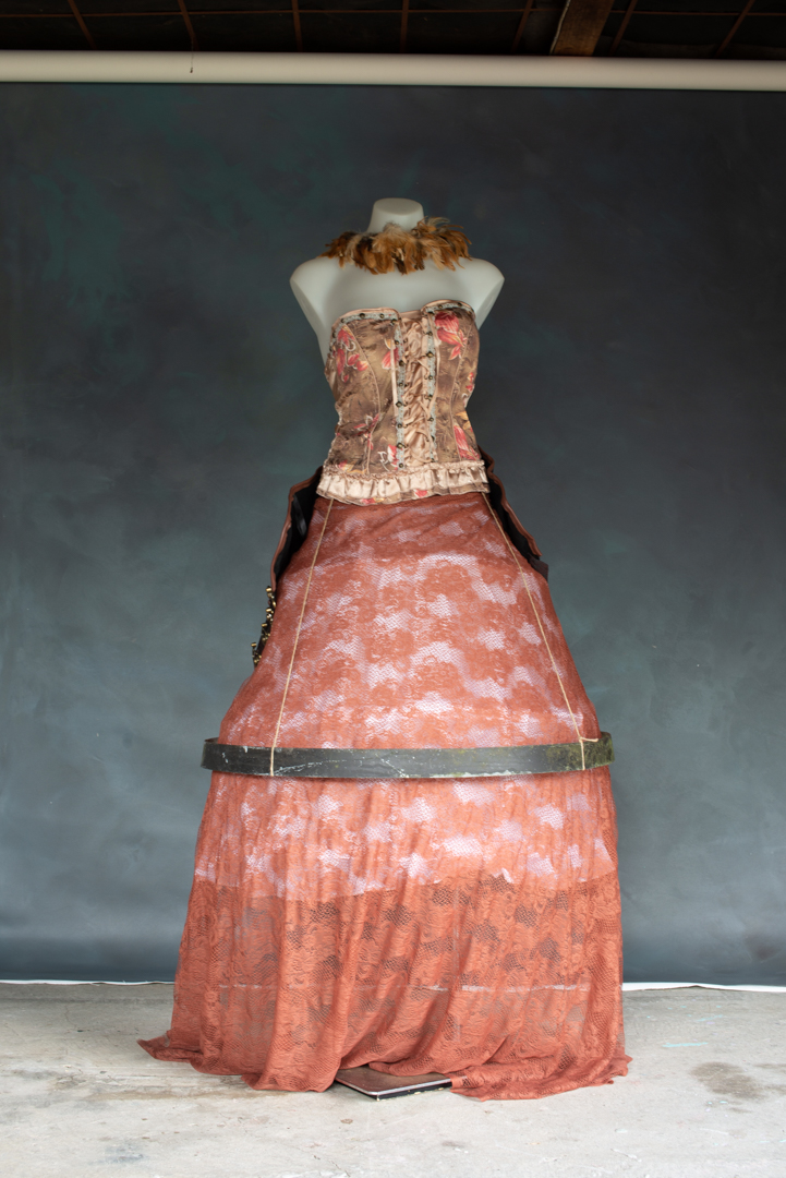 I built a muti-layered set in the garage using lengths of lace. We also fashioned a simple robe for Mandy to wear.