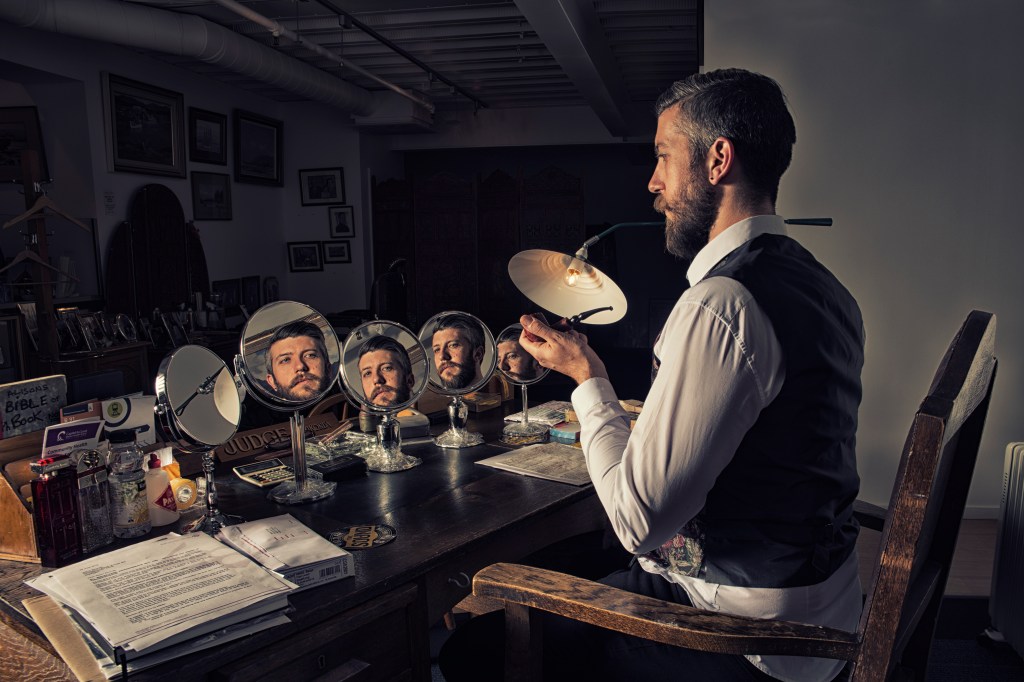 We started with shots without the powder to check that the exposure was right. The shadows on the original images were too dark so we positioned a large mirror to act as a reflector and fill them in a bit.