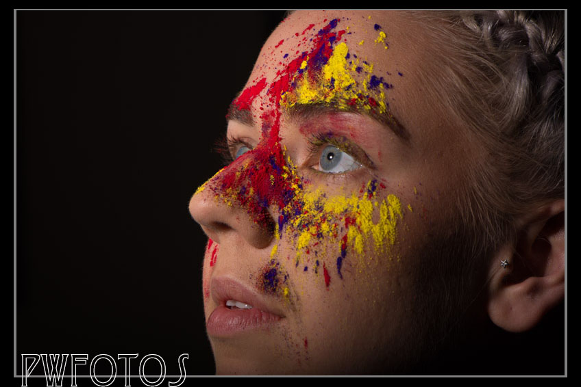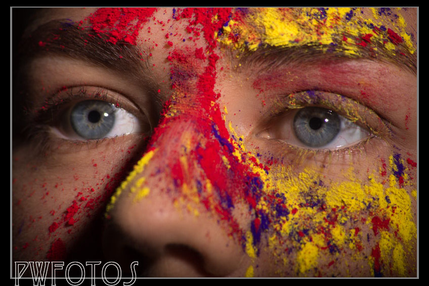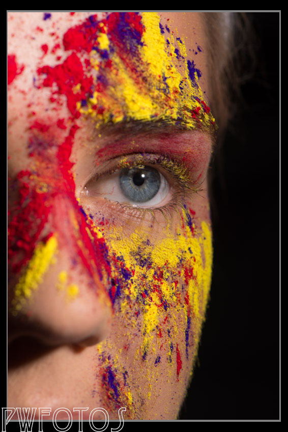 I had seen a Lindsay Adler video where she had used coloured powder on a face and shot it up close. It was amazing so I sought to do the same. Sanna works part time at my work, and as she had very vivid eyes, I asked if she would help me.