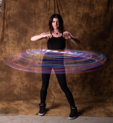 One of the elements that I had acquired after we ran the national convention was a hula hoop with LED lights inside it. I posted for a model who could handle the hula and Lauren answered the call.