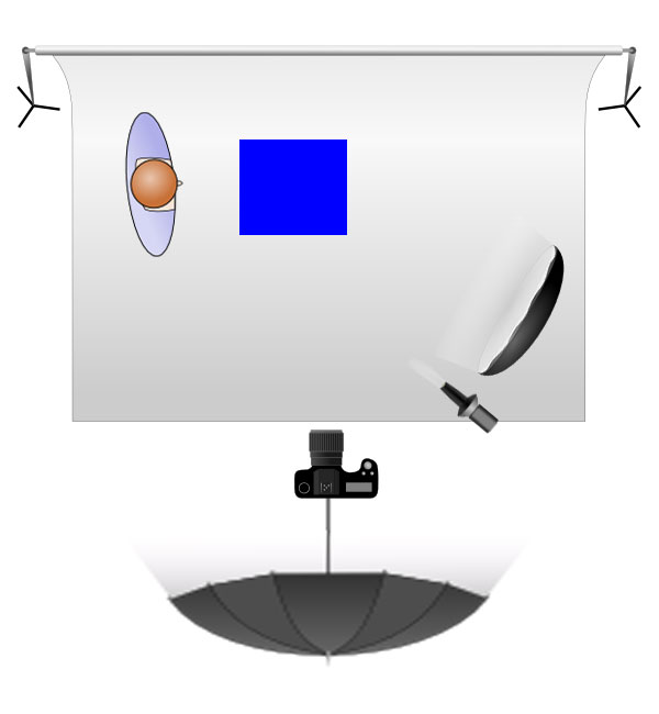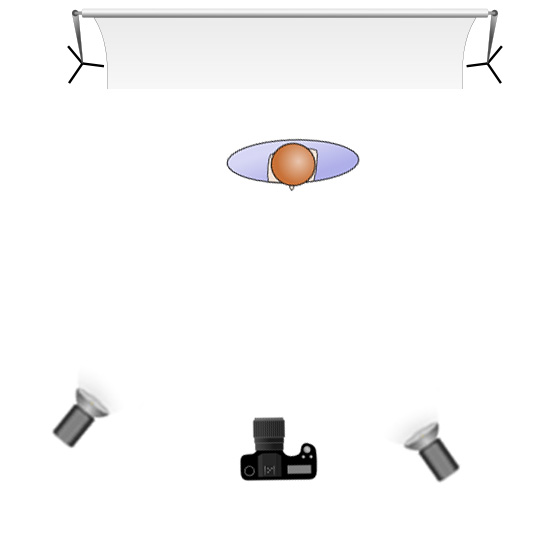 As it turned out three lights were used in the shoot. The main light was in a octabox camera right, with a fill light behind the camera shooting into a seven foot umbrella. A third light, with a snoot attachment was positioned between the camera and the main light, however this did not really add much to the screen.