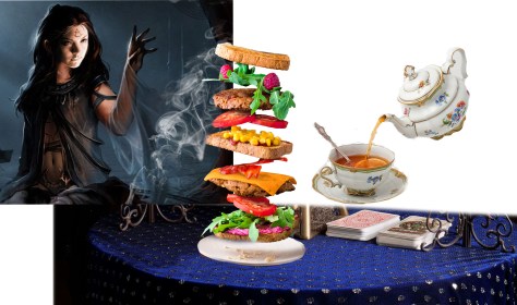 If you are observant you will note that in the shots above there is a goats skull and human skull. These were placed on the table as ideas, however in the end we decided that the scene was becoming too cluttered. Fortunately I had taken a completely blank image so removing them later was not that difficult. The blank was also used to remove the stand on the cup and teapot.