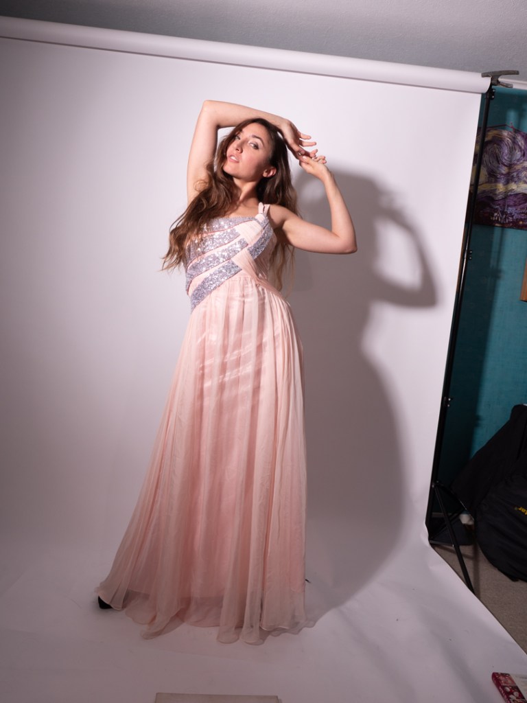The lighting in the image indicates that it is a single night coming from Camera left. They are short on a seamless white background. I see that exactly the same arrangement I initially positioned the light camera right. As this was part of the session with the other two photographers, I made things easier. I used a constant LED light that I had recently acquired. The idea was that they would not have to much about swapping out the trigger.