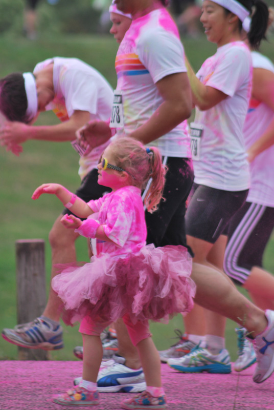 “The Color Run” is a commercial activity that originated in the United States although it has links back to a Hindi festival called Holi. Basically runners do a course and at particular sections of it coloured powder is thrown over them. I am sure that in the original form there was deep meaning to this activity but in the modern version it is all in the name of fun.