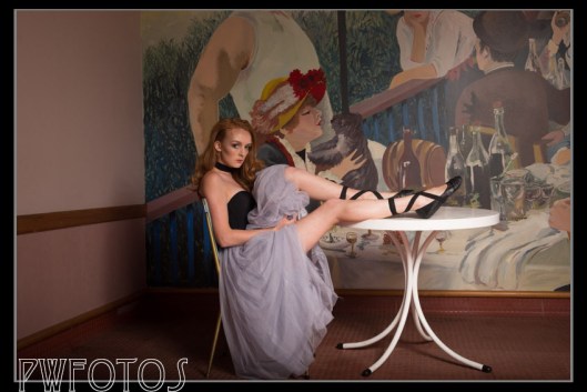This enabled us to do a boudoir shoot in a space set up so that it had room for lights. In this case I was using two lights with fill light being provided by a large umbrella, and a smaller softbox as the main light .