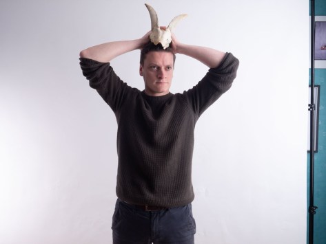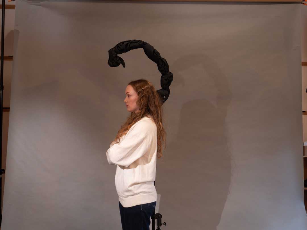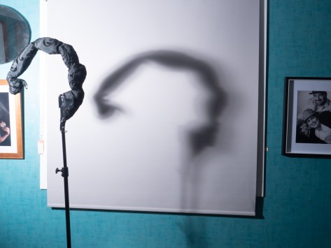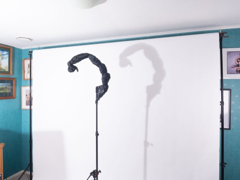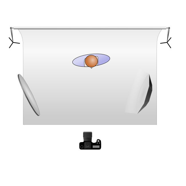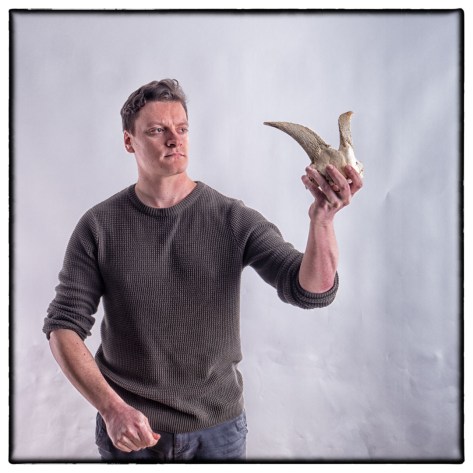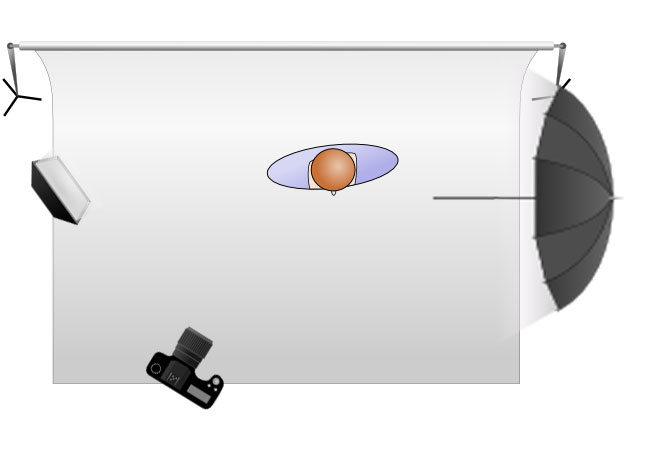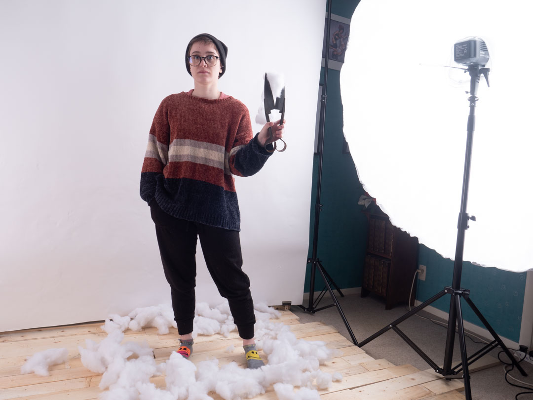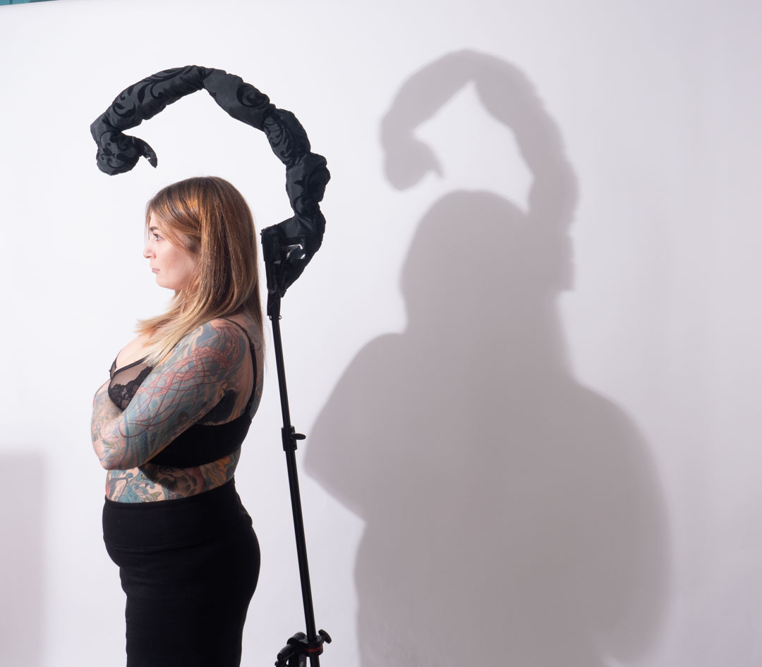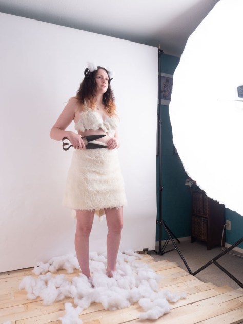 In my test shots there were two lights aimed solely at the background. However when I started to shoot I realised that if I pulled them further away that the scene was much more evenly lit. To get light on the front of both the bowl and Marianne I positioned my strobe camera right with it being bare bulbed and pointed at the ceiling. Essentially this created a large light source above her.