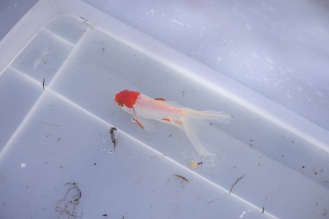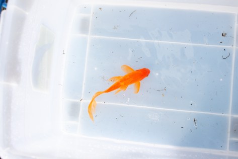 The bowl was actually larger than the one that I had tested and therefore heavier. I therefore decided against getting Marianne to lift it even though that is what we have practised. The goldfish had also become better at avoiding me so I ended up not being able to catch the large gold one that I was after, and instead had to settle with a much smaller one.