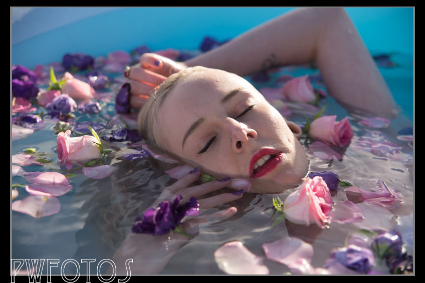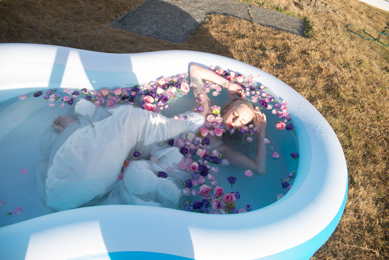 The evening that I had shot the milk water set I saw a Facebook post from Megan wanting a photographer to do a trash a dress shoot with her. She had got married on January 24 and wanted to use the flowers from the wedding before they were thrown away. I thought the small pool would be perfect and so we arranged to meet after work on Tuesday 3 February at her new place in Miramar.