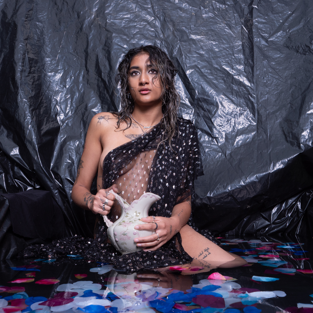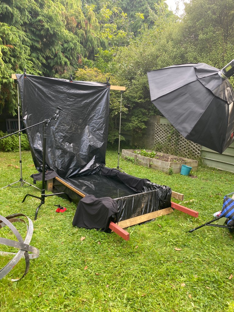 I had always intended that the black polythene would not be in the final image. It was acting as a backdrop.