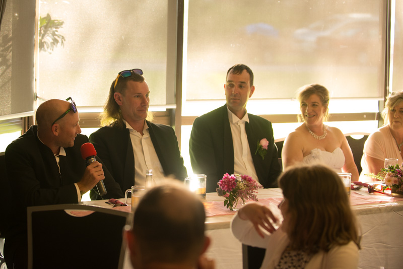 The stairway gave us the advantage to get some higher angled shots , and I also packed my wide angle Olympus lens so that I could capture the whole reception area. Normally windows behind the bridal table are a nightmare to shoot with and I had anticipated needed to use flash to capture images of the speech. As it turned out the sun was coming in through the high windows on the opposite side of room lighting the table from the front. This gave me workable light until much later in the evening when I had to resort to flash.