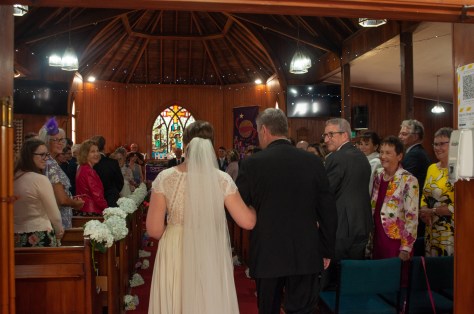 I headed off to the church just before them and positioned myself at the front as I had practised the night before. Samantha positioned herself at the rear so she could shoot as they came in and then down the aisle. She managed to capture Taylors look when she first saw Kristi.
