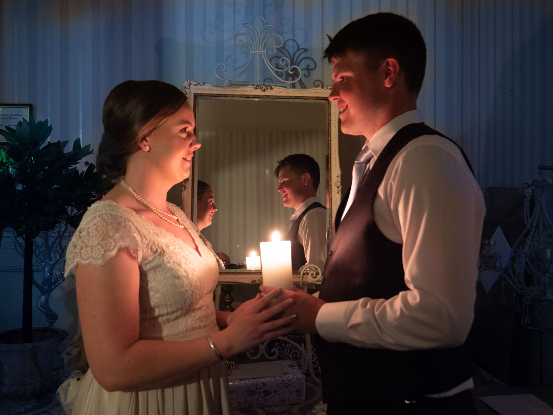 For the final shot of the evening I grabbed the couple and their unity candle and took a photo of them in the entrance way. This was only lit with the candles and a slow shutter speed. It replicated a shot that I had done at Kirsti’s sisters wedding that I knew she liked.