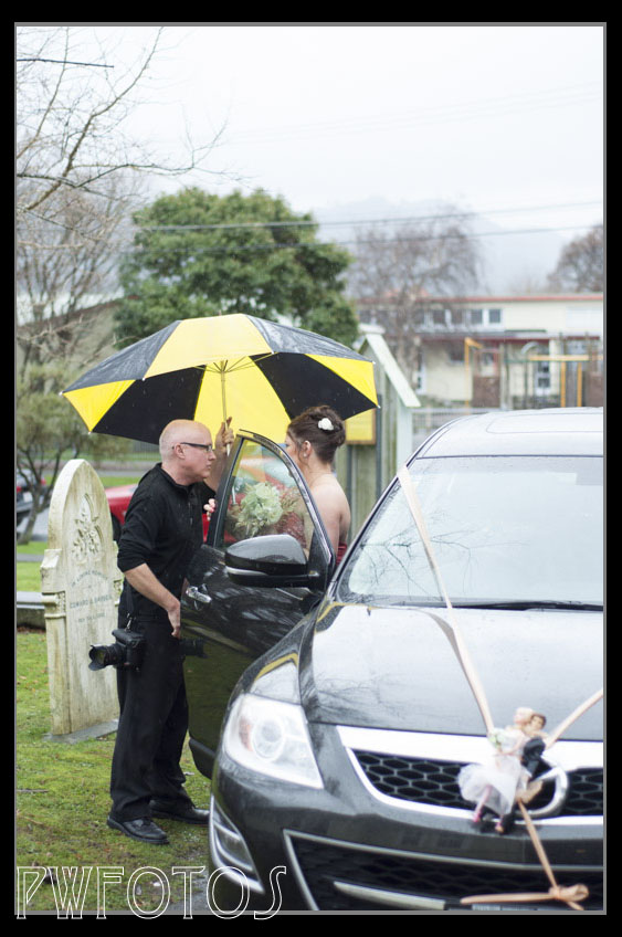 We had hoped for good weather but unfortunately that was not on the order and by the time I went to Catherine’s house there was an inch of water on the ground. The rain continued through the service but by the time it had finished there was the possibility that it may go away. It was still too risky to do the family photos outside of the church, and therefore they were moved to later on in the day at the reception.