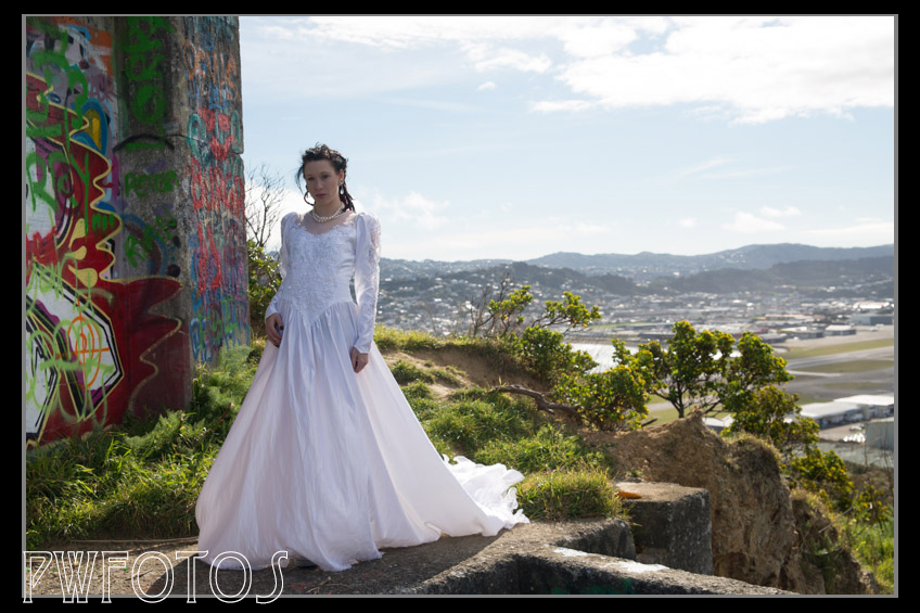 I dropped off a wedding dress that I had purchased for a “trash the dress” shoot and Grace found a model. She arranged to meet with the model at 2.00pm and I would arrive at 4.00pm. The original plan was to shoot at Percy’s Reserve in Lower Hutt and then down at Petone beach.